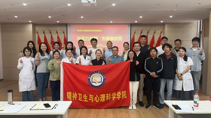5月15日下午,精神卫生与心理科学学院联合合肥市蜀山区卫健委,在南七街道社区卫生服务中心举办“与压力共舞,为健康加冕”心理健康专题讲座。该院教职工心理健康服务中心副主任魏俊娟受邀担任主讲。合肥市蜀山区卫健系统60余名青年职工参与培训。