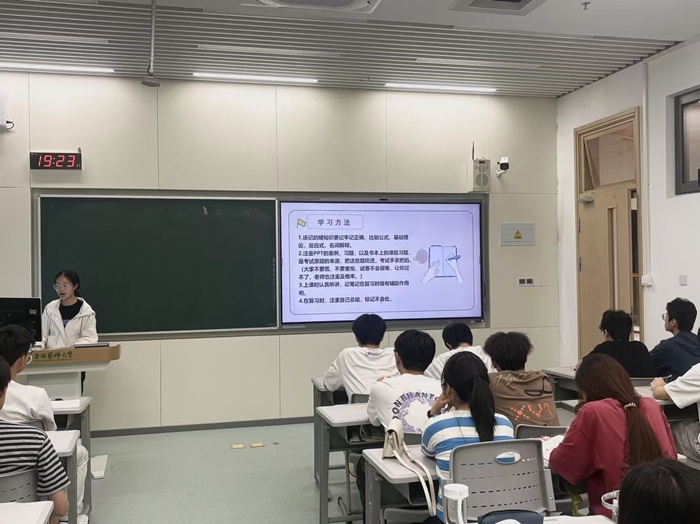 该院构筑“导学-助学-促学”三位一体学业互助体系,为学生成长成才注入内生动力。启航奖学金获得者张静雅为新生分享高效学习方法、展示个性化学习计划、传授实用时间管理技巧;学院创新打造“学霸笔记”云共享库,设立一对一帮扶小组和晚自习“笔记诊疗台”,为学业困难学生提供精准化指导,发挥朋辈“助”学作用;全国高校心理学专业本科生创新创业论坛二等奖得主阮治水等竞赛获奖者分享备赛策略,激发低年级学生创新创业热情,促进理论知识向实践能力转化,营造以赛“促”学、共同进步的良好学风氛围。