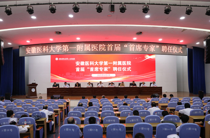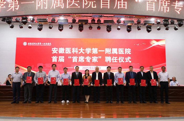 徐朝阳代表一附院向首届受聘“首席专家”的教授们表示祝贺。他表示,此次首届“首席专家”聘任仪式是医院积极响应中央人才工作会议精神和安徽省委人才工作部署要求的具体实践。希望受聘专家们要勇挑重担,继续引领学科发展,积极探索新的诊疗技术、方法和理念;要强化团队建设,打造一流学科团队,充分发挥带头人的引领示范作用和“传帮带”作用;要加强科研创新,提升学科影响力,注重临床与科研的深度集合,为推动医院高水平建设发展提供有力支撑。