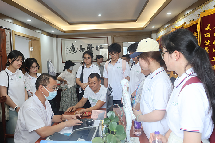 锤炼专业素养,弘扬志愿精神。在祁门县中药材种质资源圃,成员们深入田间,实地观察黄精、祁白术等道地药材的形态特征和生长特性,详细了解规范化种植技术与产业发展现状;在祁门县中医院,成员们在中药房中学习中药材辨识与调剂知识,在针灸推拿科等特色科室感受中医外治法的独特魅力;祁山镇卫生院内,安徽省基层名中医、黄山名医许柳田运用“五运六气”等中医经典理论为患者精准施治,深化了实践团成员对中医理论精髓的理解。实践队还化身志愿者,走进祁门中医夜市,主动参与现场秩序维持,在义诊区亲身体验中医专家“望闻问切”诊疗过程,在养生区习练五禽戏,领悟中医“治未病”的养生智慧。