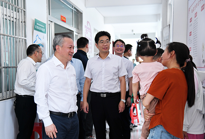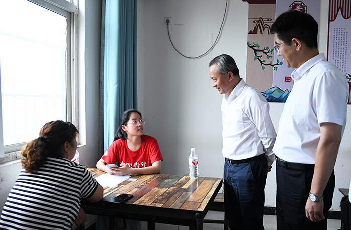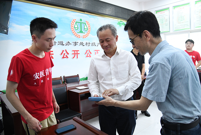 7月18日,校长翁建平,校党委常委、副校长邱志海一行前往阜阳市颍州区郝庄社区,慰问指导公共卫生学院“合理膳食,健康颍州”暑期社会实践团,观摩实践活动并与实践团师生座谈交流。
