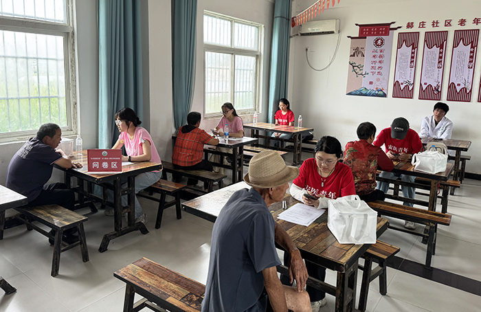 在郝庄社区,翁建平与实践团成员并肩工作,亲身参与信息登记、问卷调查、体格检测等环节。他仔细询问每位学生的实践进展,了解居民健康需求,对实践团的高效组织与专业服务给予高度肯定。